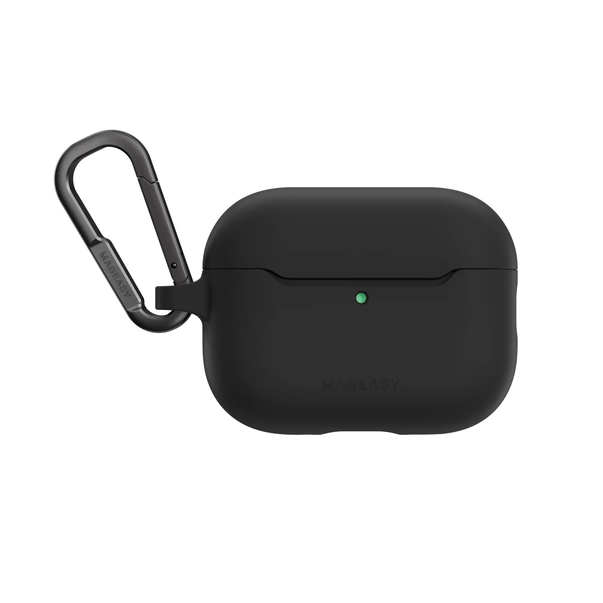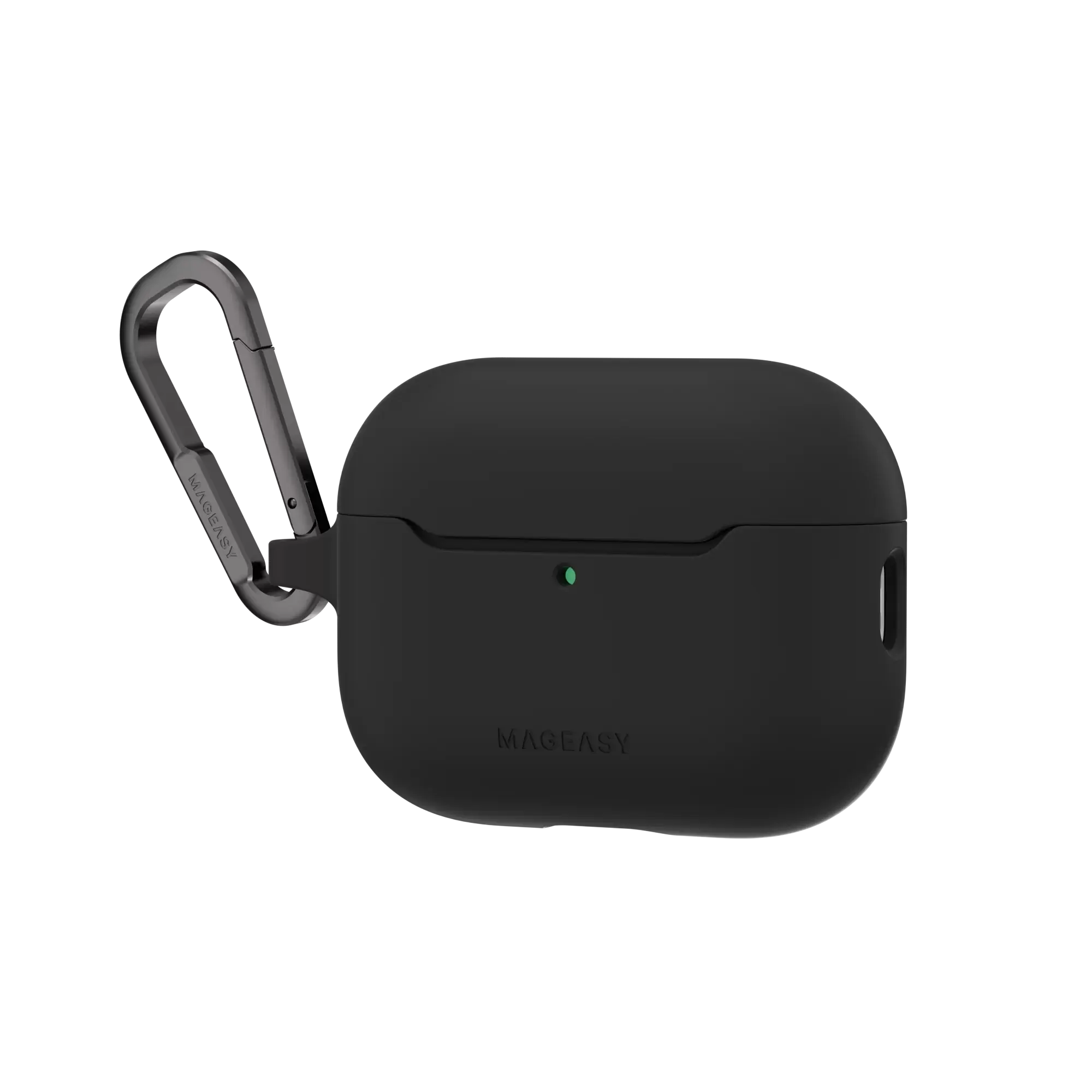 Durable carabiner attaches to the AirPods case for easy transport and compatibility with MAGEASY straps & strap bags.